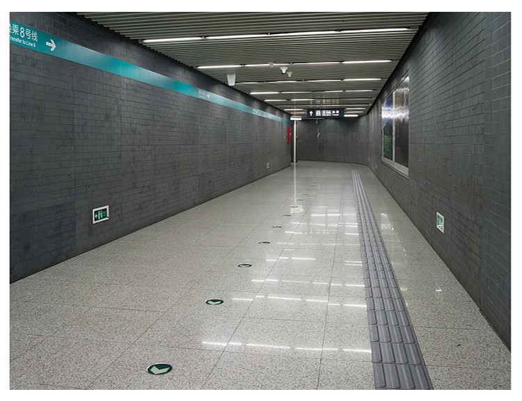 高鐵站臺進出入口中黃色盲道磚鋪裝